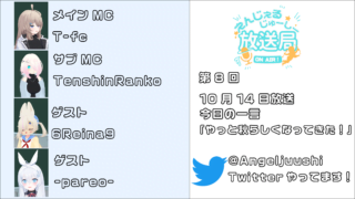 放送予告第8回放送予告! 第8回放送の予告です!ハロウィンまでもう少しということで、少しだけハロウィン仕様になってるかも...?ぜひ見てください!放送日時10月14日(土)23:00~24:30(予定)出演者T-fc、TenshinRanko、-pareo-、6Re...2023.10.11放送予告